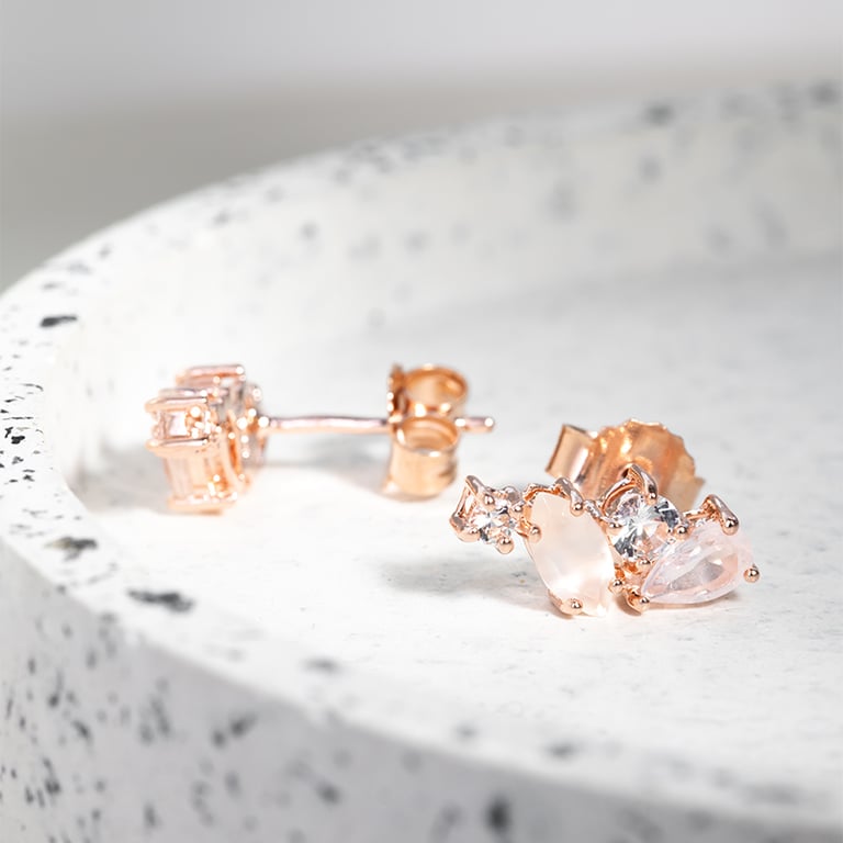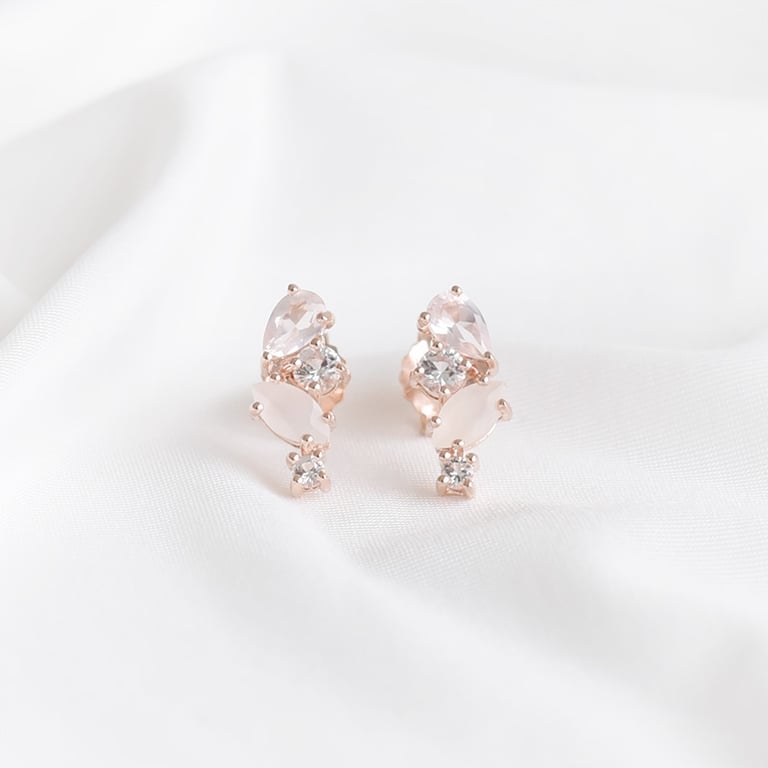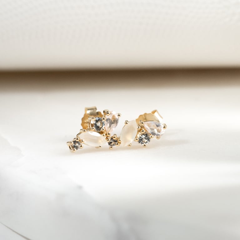 Ohrringe in Silber mit Topas, Rosenquarz und Mondstein Nacho