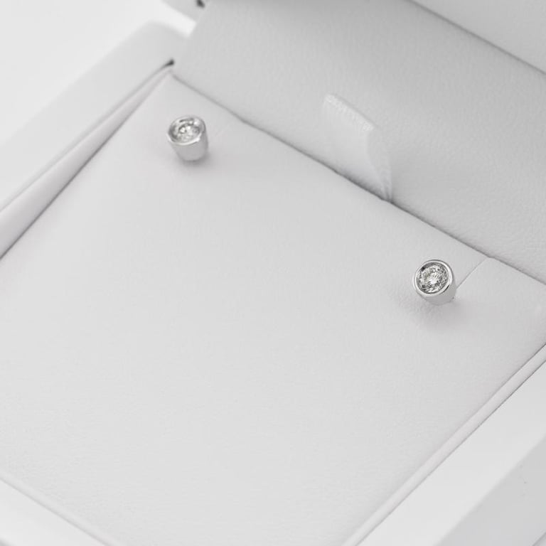 • kleine Ohrringe aus Gold oder Platin mit runden Diamanten in einer Zargenfassung