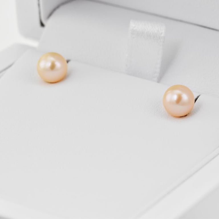 • die pfirsichfarbene Perlen dieser Ohrringe machen sie zum perfekte Accessoire