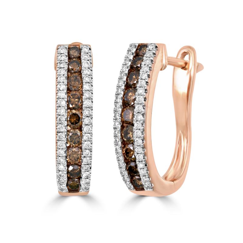 • Ohrringe in Roségold in einer speziellen Kombination mit weißen und champagnerfarbenen Diamanten