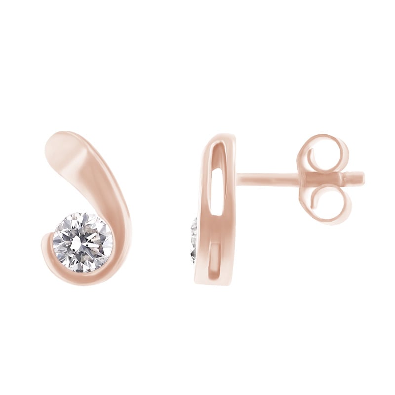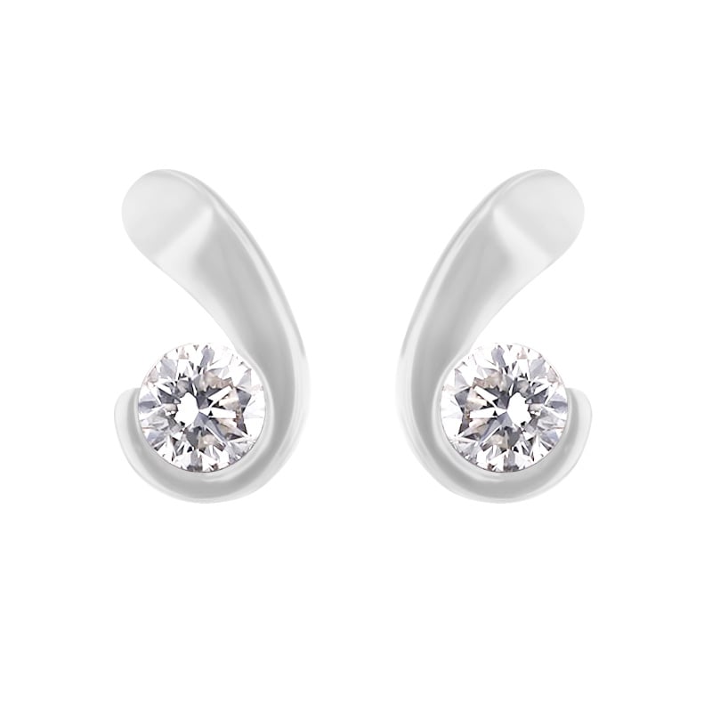 • die schwungvollen Ohrringe sind mit strahlenden Diamanten geschmückt
