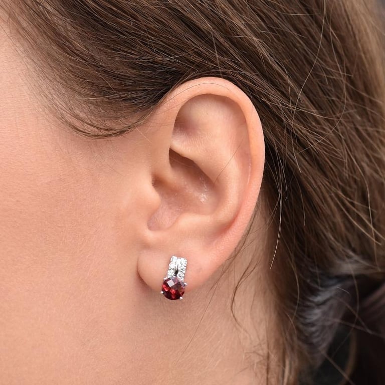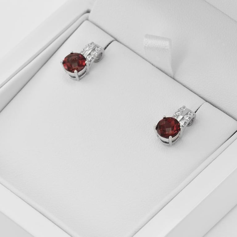 • silberne Ohrringe, die von Granaten im strahlenden Rot gekrönt werden