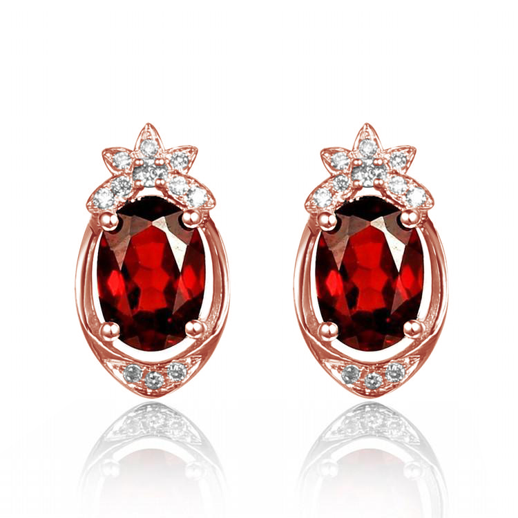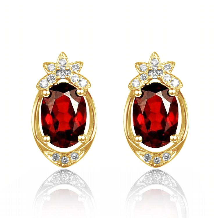 • bei diesen Goldohrsteckern hält ein Rahmen mit Diamanten blutrote Granate fest