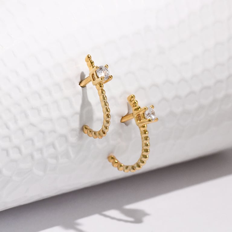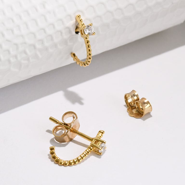 • die originellen Ohrringe mit kleinen Goldkügelchen sehen aus wie Ringe, sind aber Ohrstecker