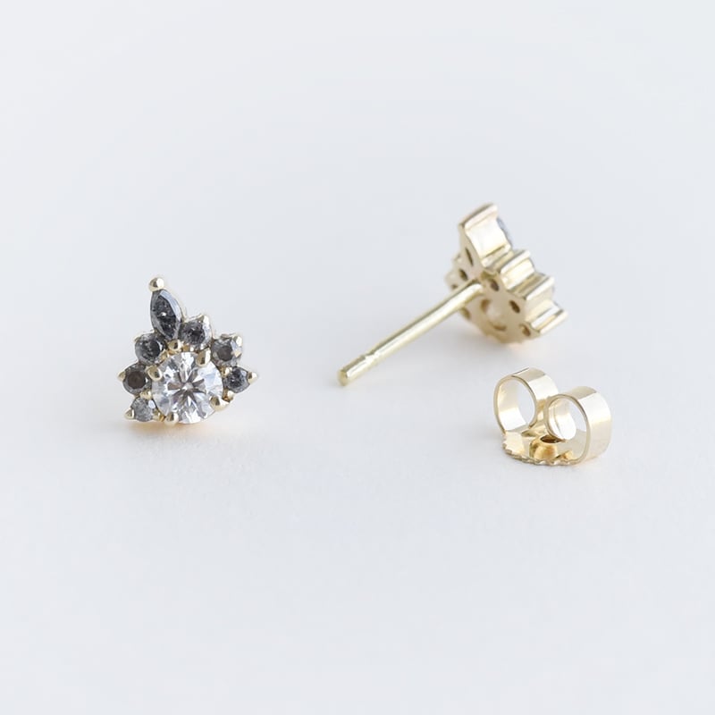 • der zentrale weiße Moissanit ist umgeben von rauchig grauen Salt and Pepper Diamanten