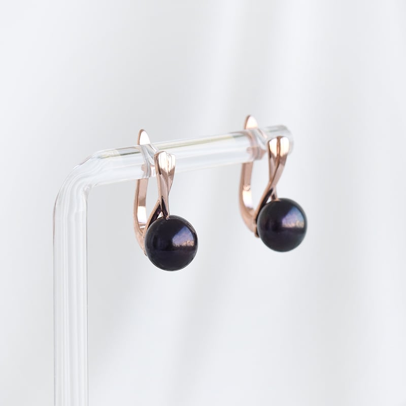 • silberne Ohrringe mit schwarzen Perlen und rosa Vergoldung