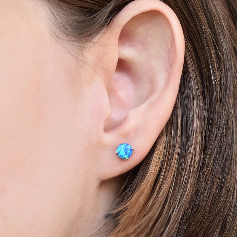 Ohrstecker aus Gold 585 mit blauen runden Opalen Hulda