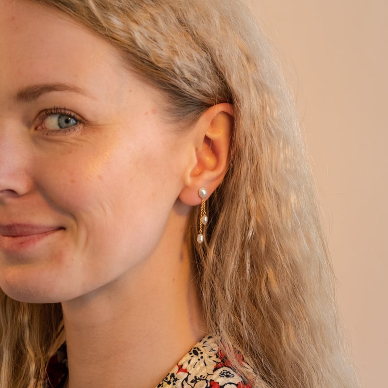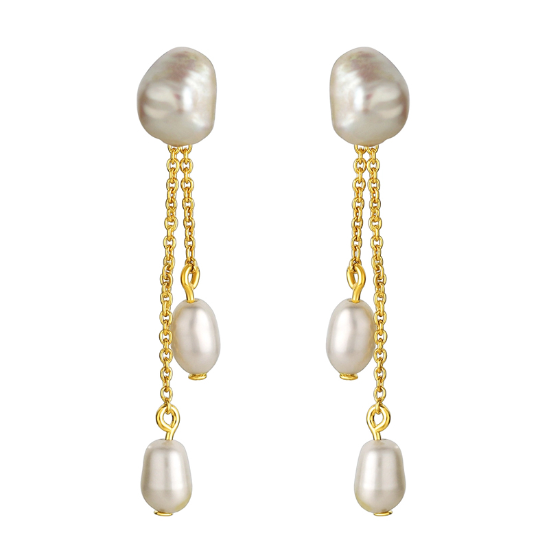 • eine schillernde Kombination aus vergoldetem Silber und unregelmäßigen Barockperlen