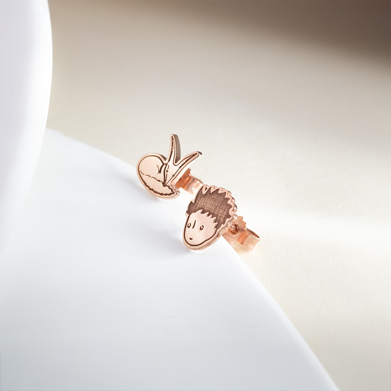 • ein Ohrring mit dem Motiv des Kleinen Prinzen und der andere mit einem Bild seines Freundes, dem Fuchs