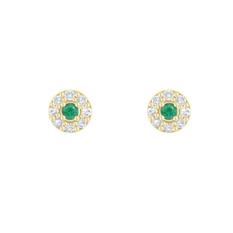 Ohrstecker mit einem Smaragd und Diamanten im Halo-Stil Zowie