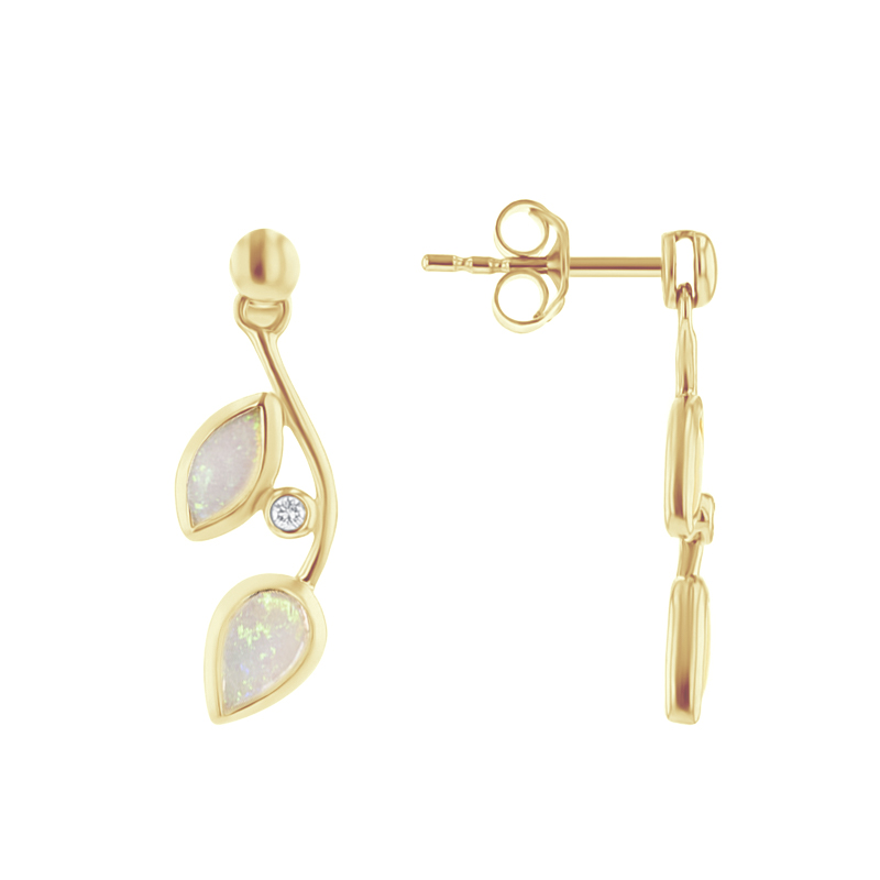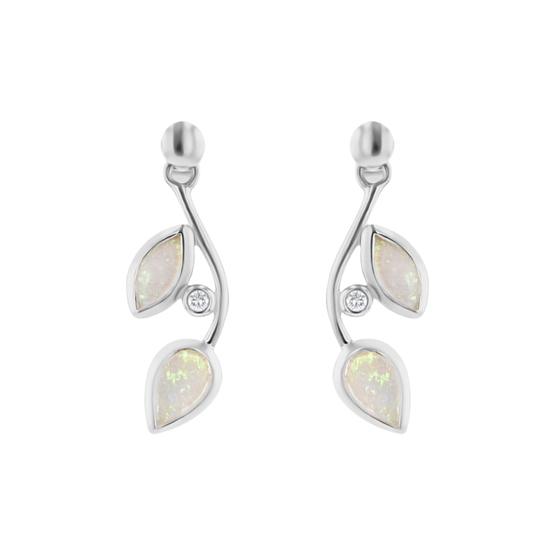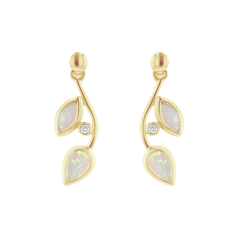 Ohrstecker mit Opalen in Blattform und Diamanten Corbett