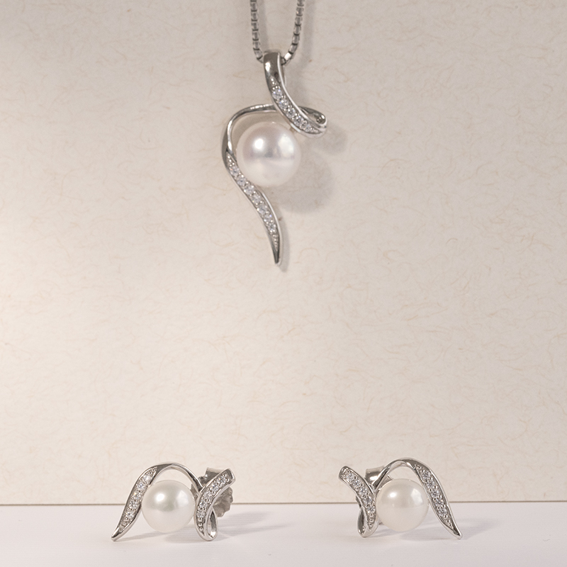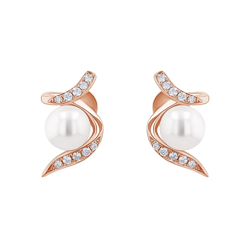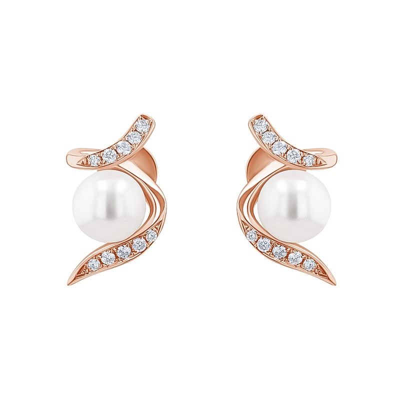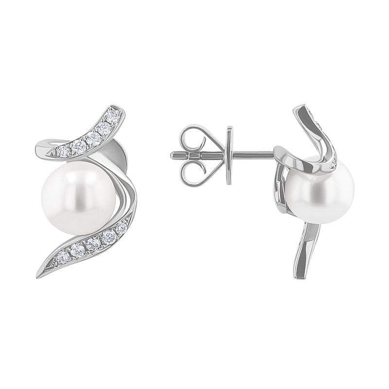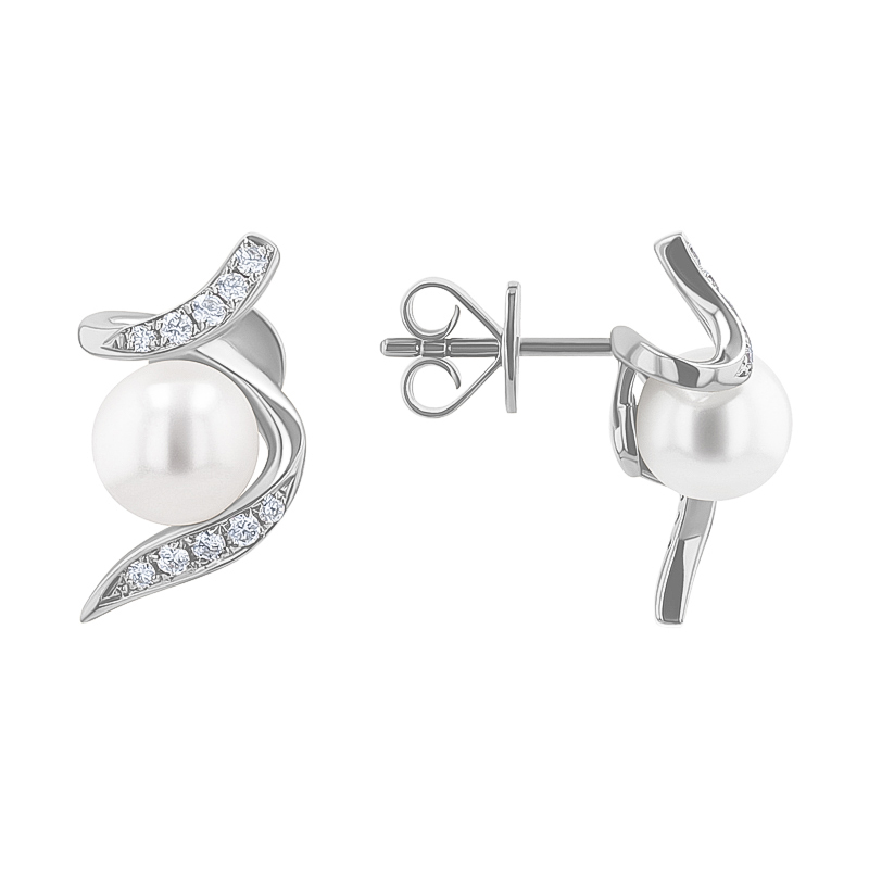 • 12 Diamanten schmücken eine elegante Schleife, die eine weiße Perle sanft umschließt
