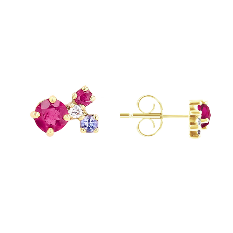 Ohrstecker mit Tansanit, Turmalin, Rubin und einem Diamanten Kerrie