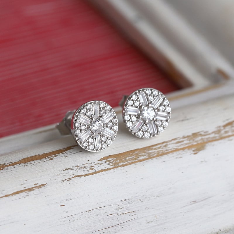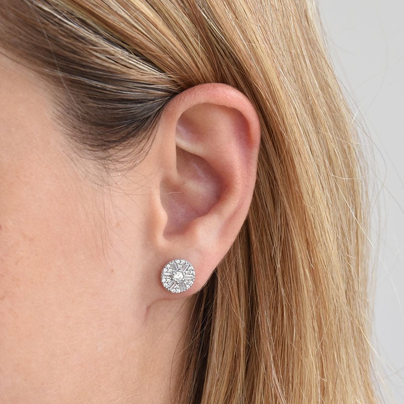 • eine raffinierte Pavé-Fassung mit einem Blumenmotiv aus Baguette-Diamanten