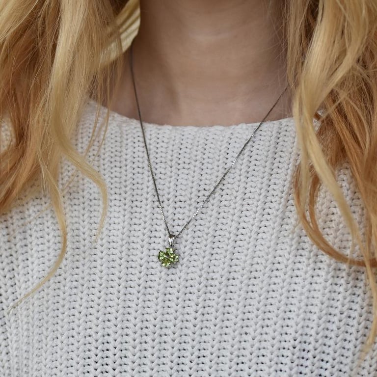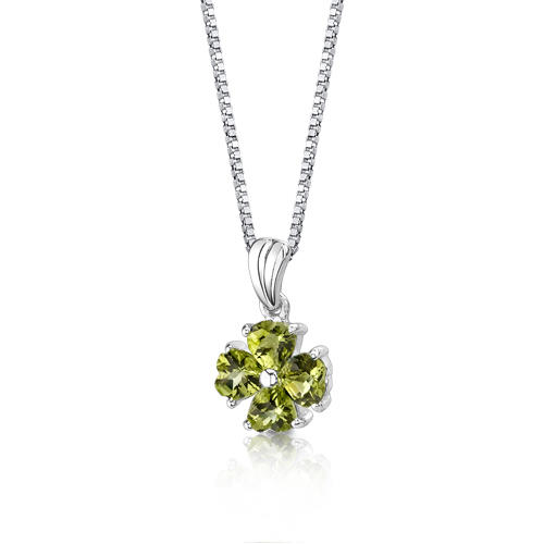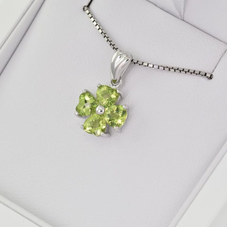 • Glücksbringer aus Olivinen: ein vierblättriges Kleeblatt in Silber