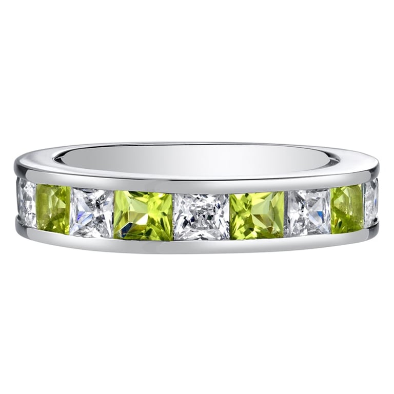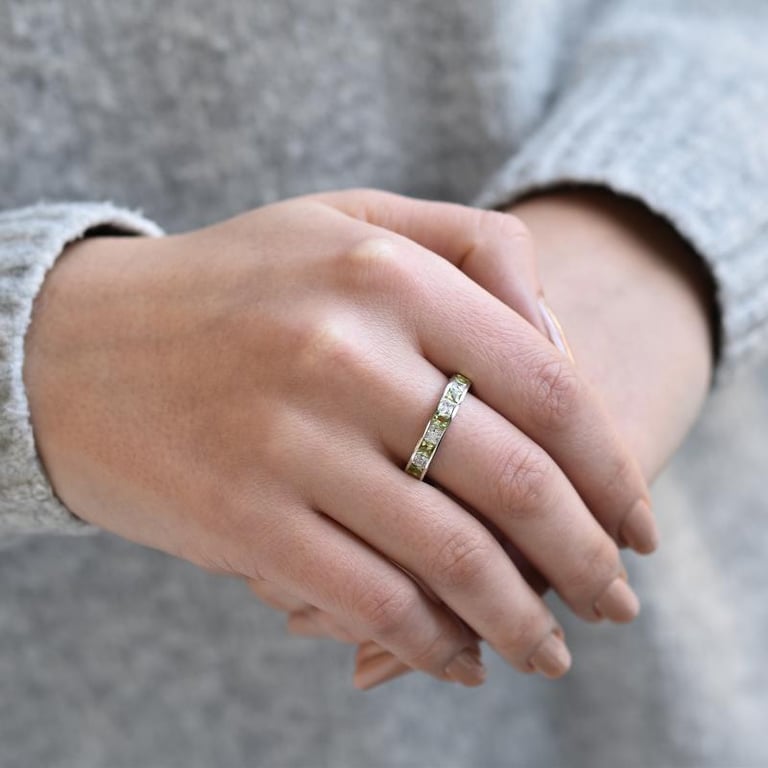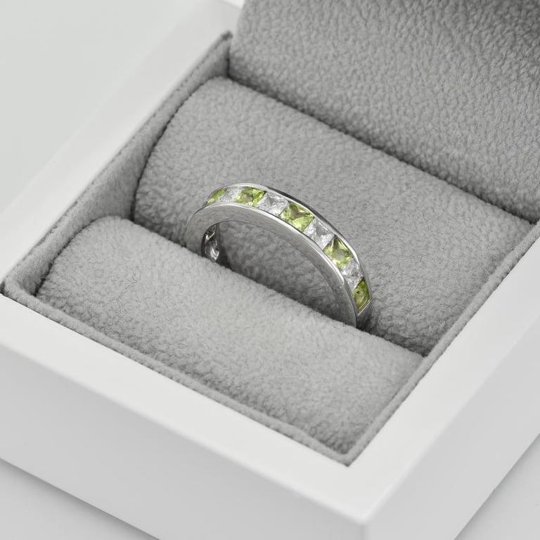 • silberner Eternity-Ring mit grünen Olivinen und weißen Zirkonen