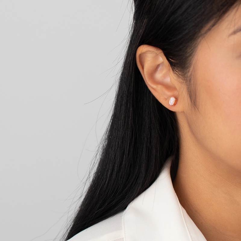 • die Ohrringe aus Roségold sind mit rosa Opalen besetzt