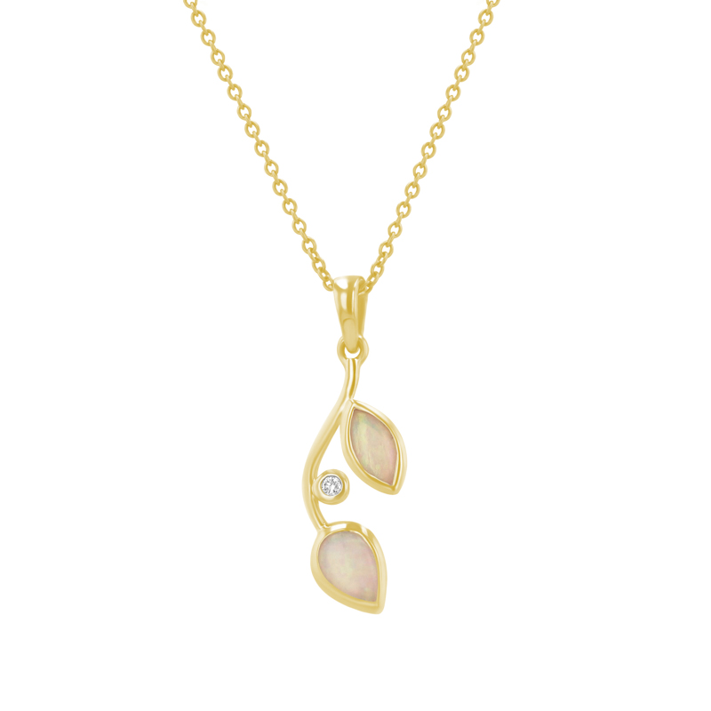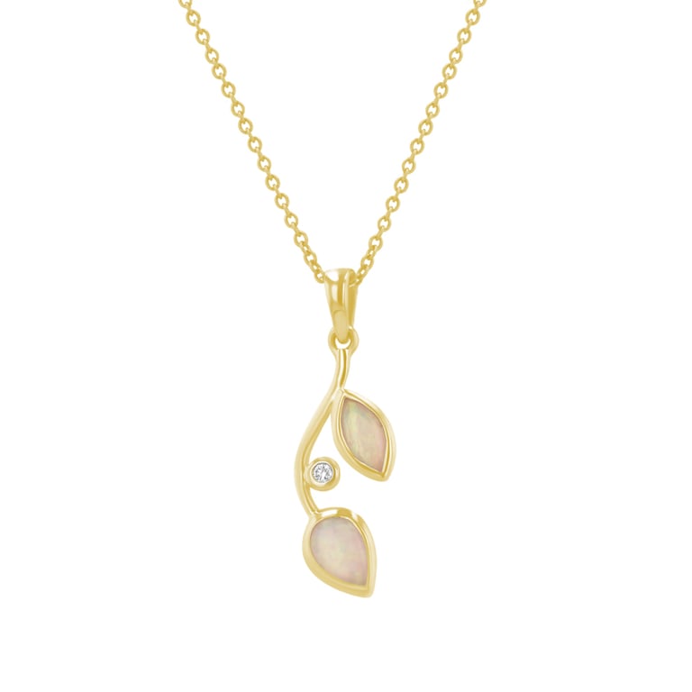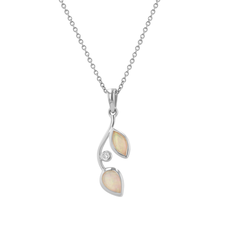 • die bis ins kleinste Detail wunderbar verarbeiteten Blätter werden von zwei weißen Opalen und einem funkelnden Diamanten geschmückt