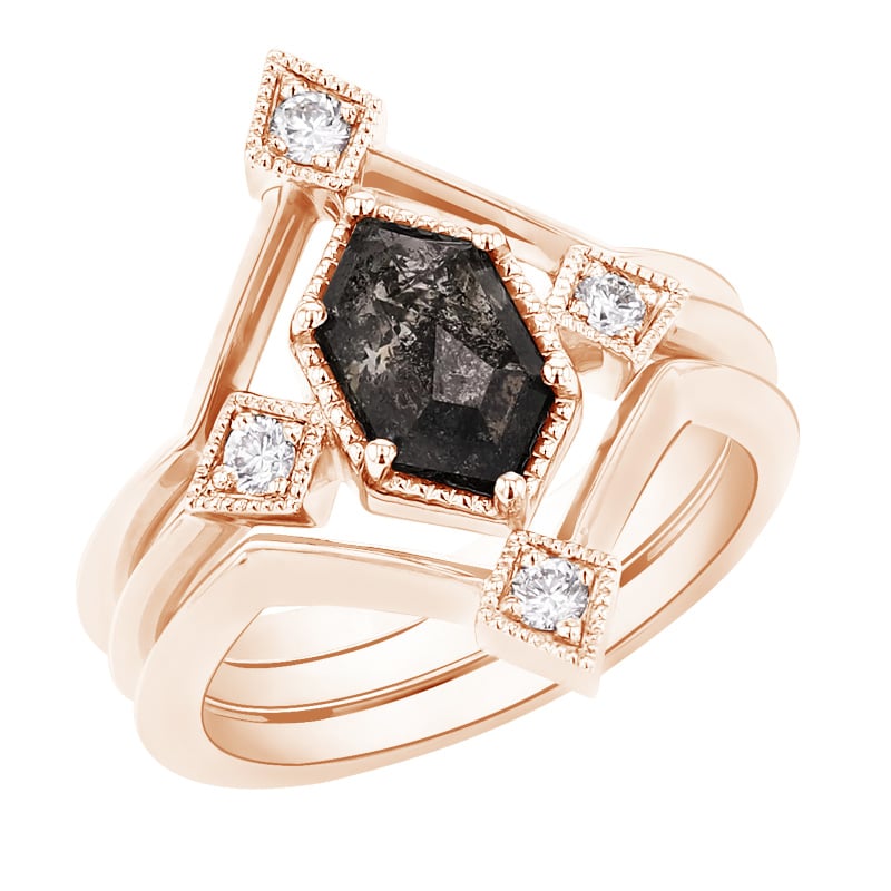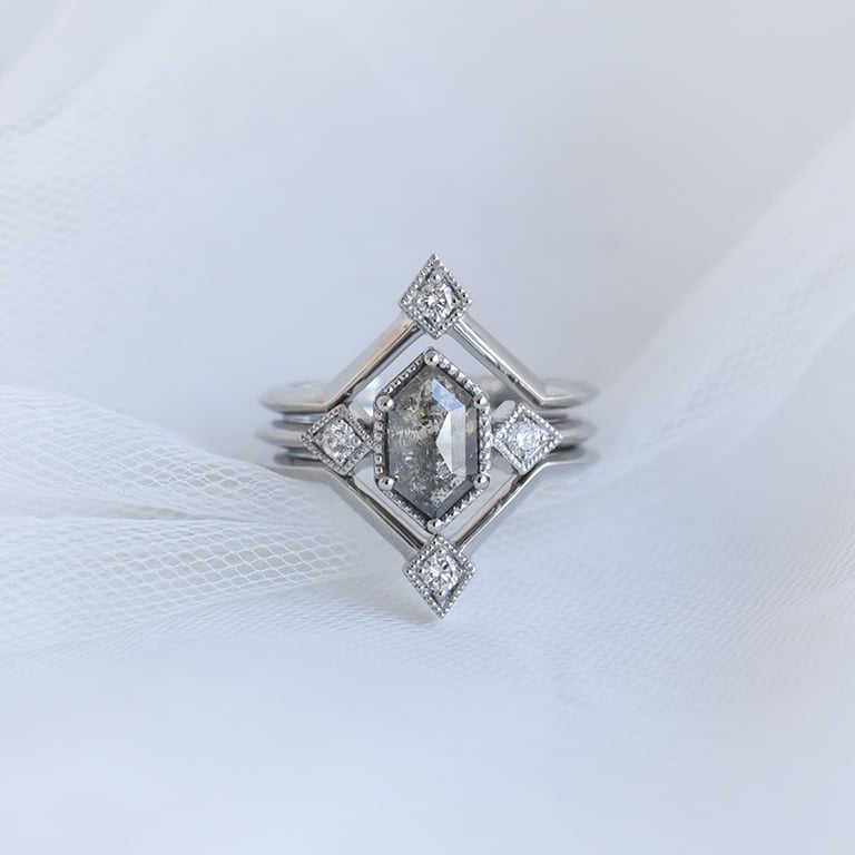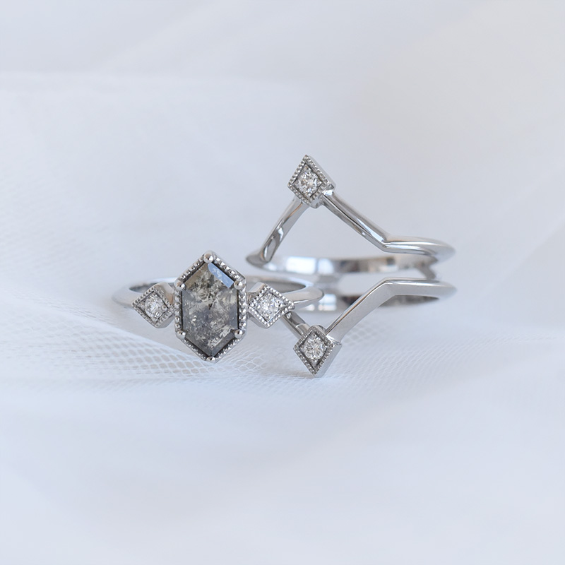 Originelles Ringset mit Salt and Pepper Diamanten Ural