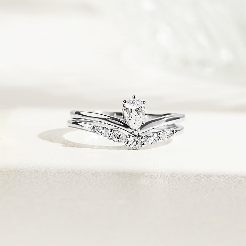 • die Kombination eines außergewöhnlichen Verlobungsrings mit einem unkonventionellen Ehering, der Eleganz ausstrahlt