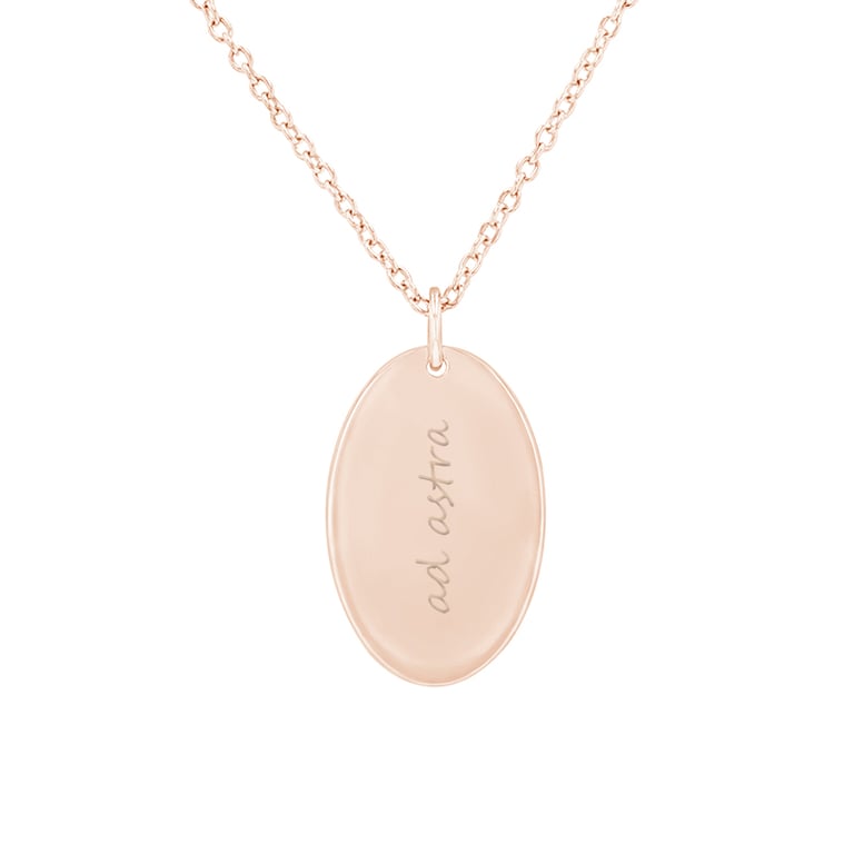 • ein zarter ovaler Anhänger mit der Möglichkeit einer beliebigen doppelseitigen Gravur, den wir in Silber oder auch mit Gelb- oder Roségold vergolden