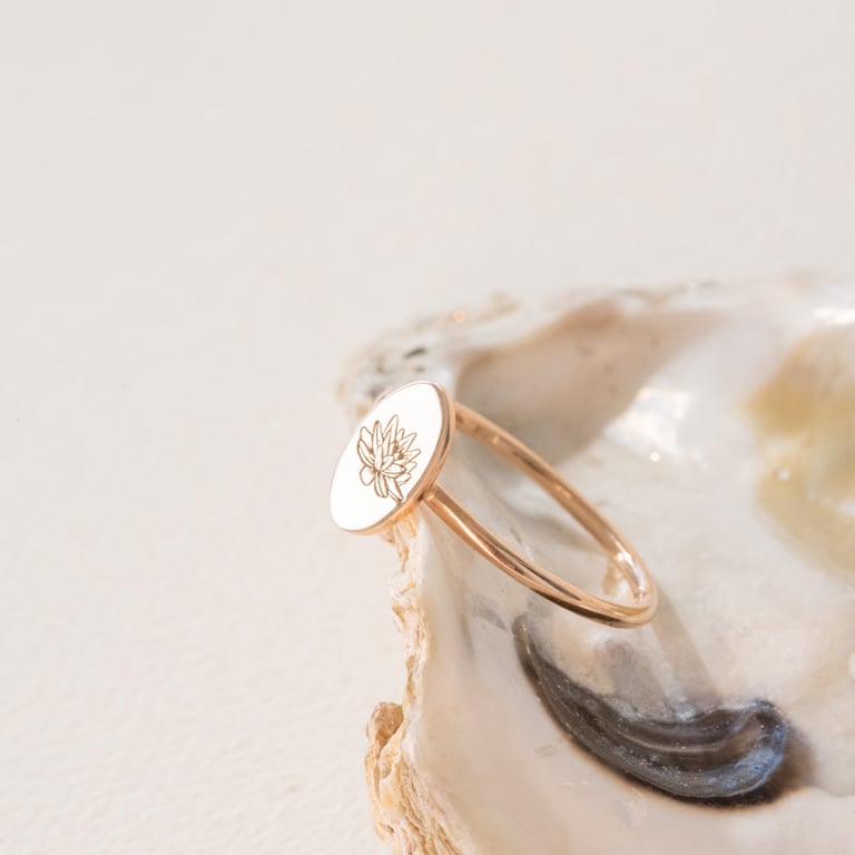 • Ring mit einer ovalen Fläche für die Gravur einer Blume Ihrer Wahl