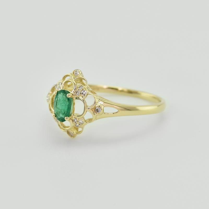 Ovaler Smaragd im Goldring mit Diamanten Kiep