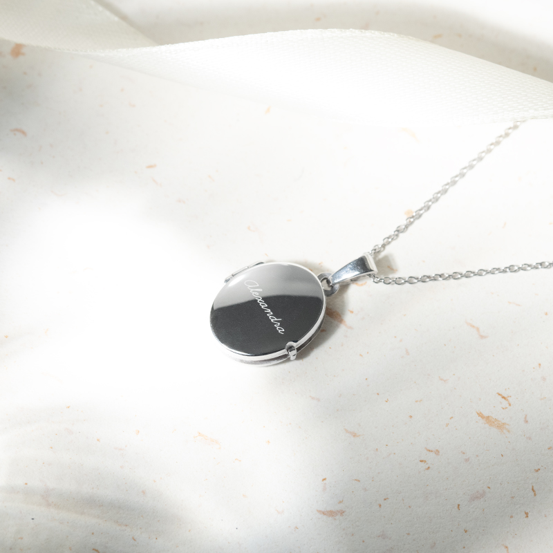Ovales silbernes Medaillon zum Öffnen Dalea