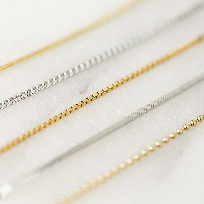 • dezente Ankerkette mit einer Breite von 1 mm und einer Länge von 45 cm aus 14k Gold