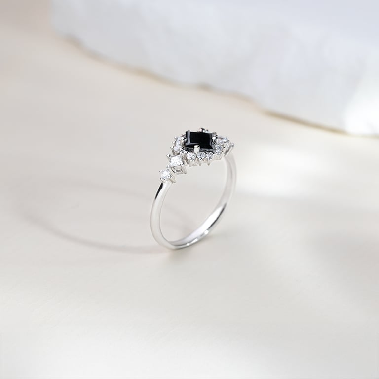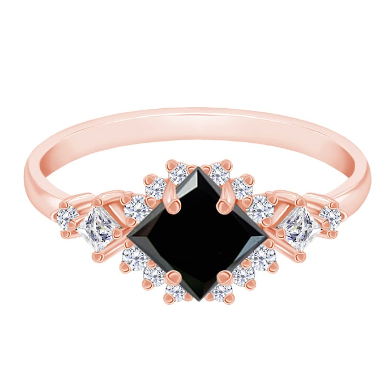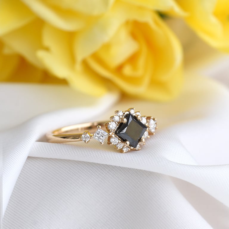 • origineller goldener Ring mit schwarzem Diamanten in Princess-Form
