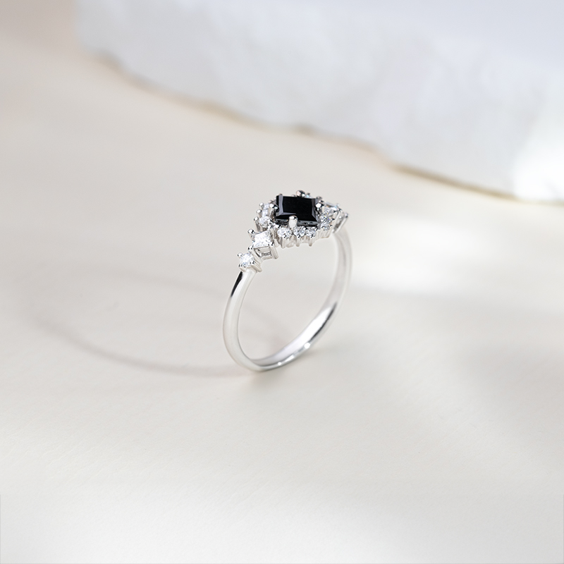 Perfekter Ring mit schwarzem Diamanten und Moissaniten Medrie