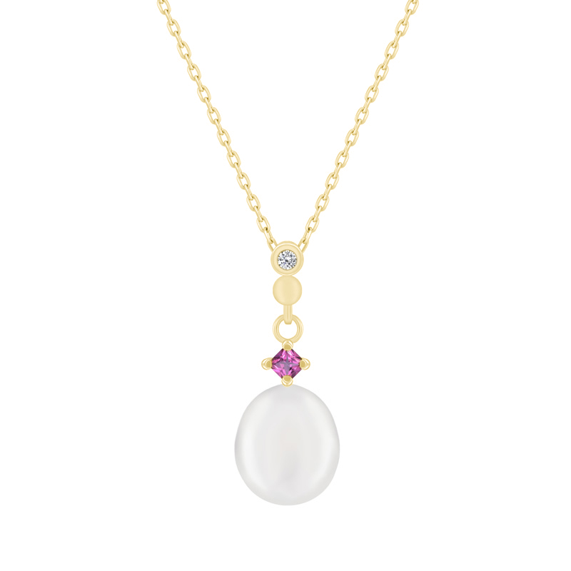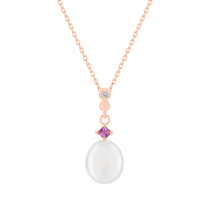 Perlanhänger mit rosa Saphir und Kette aus 750 Gold Salima