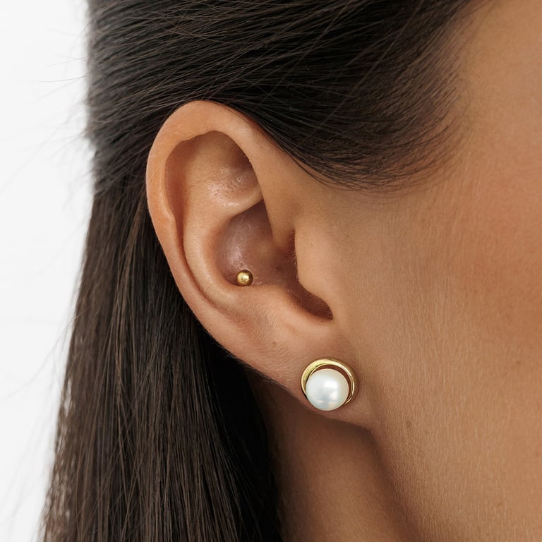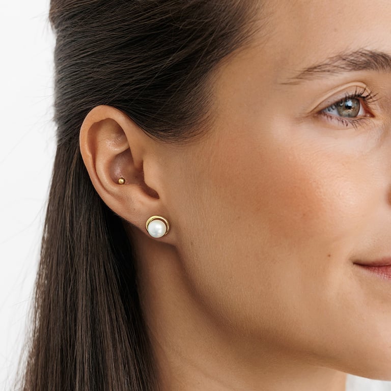 • die dezenten Silberohrringe sind mit einer Perle verziert