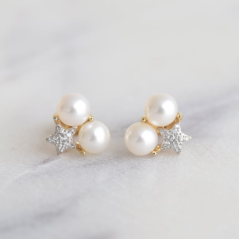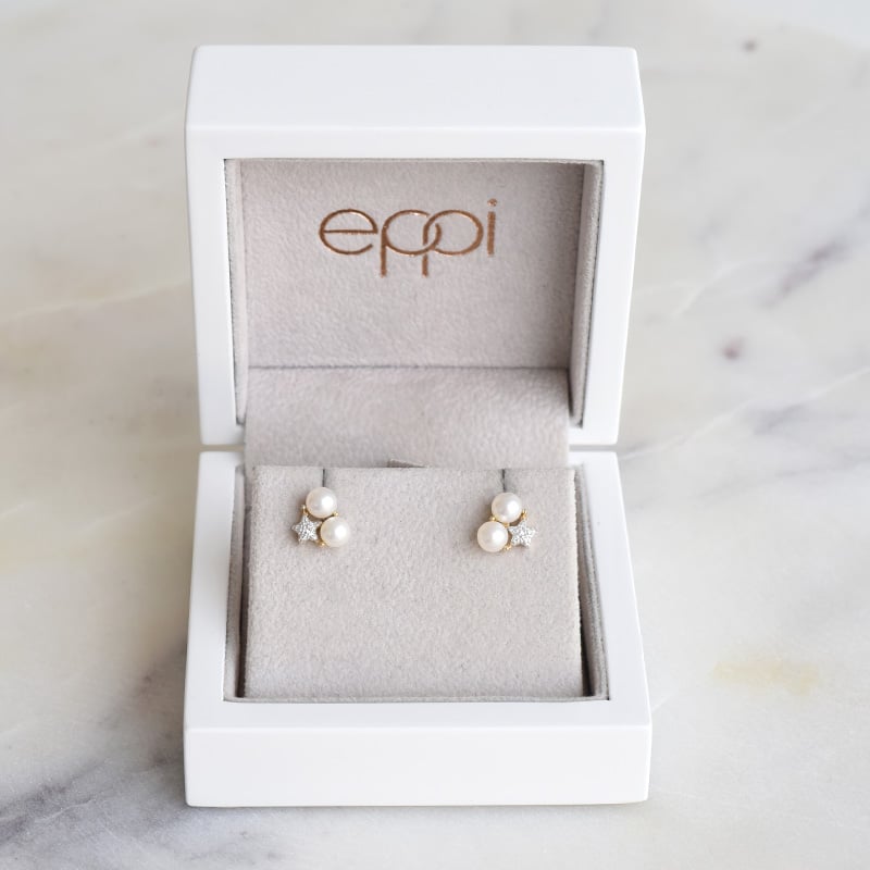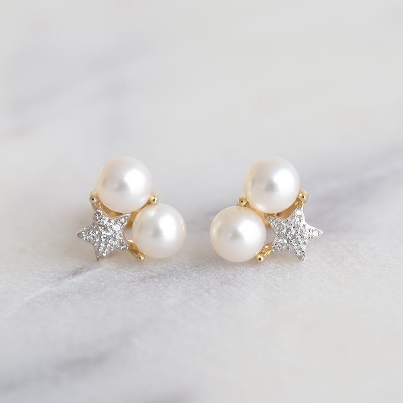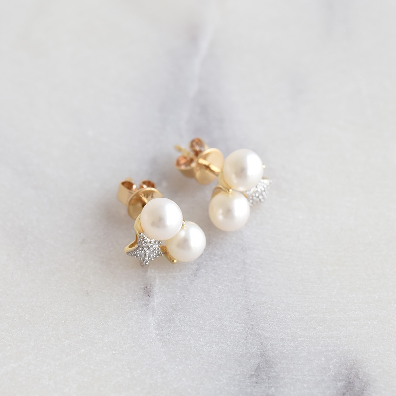 • jeder Ohrring besteht aus einem Perlen-Duo und einem Stern aus natürlichen Diamanten