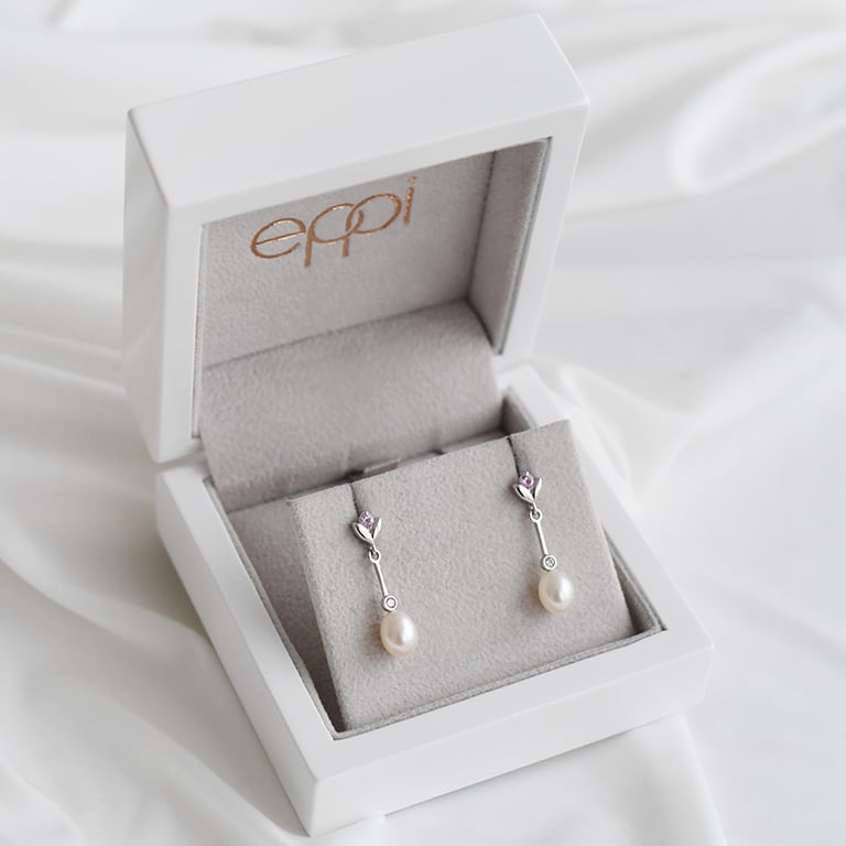 Perlenohrringe mit Saphiren und Diamanten Madhula