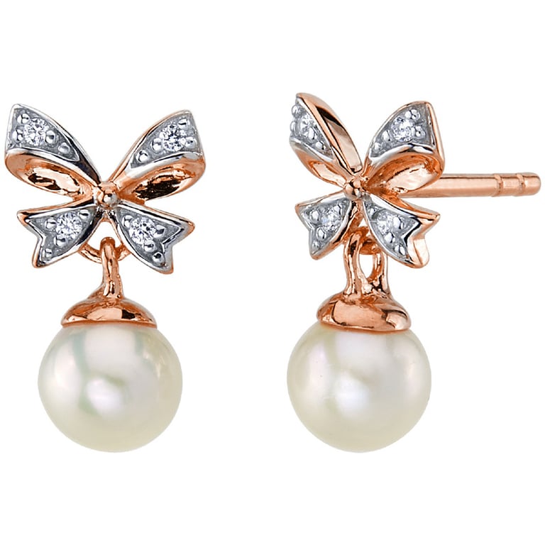 Perlenohrringe mit Schleifen und Lab Grown Diamanten Pegeen