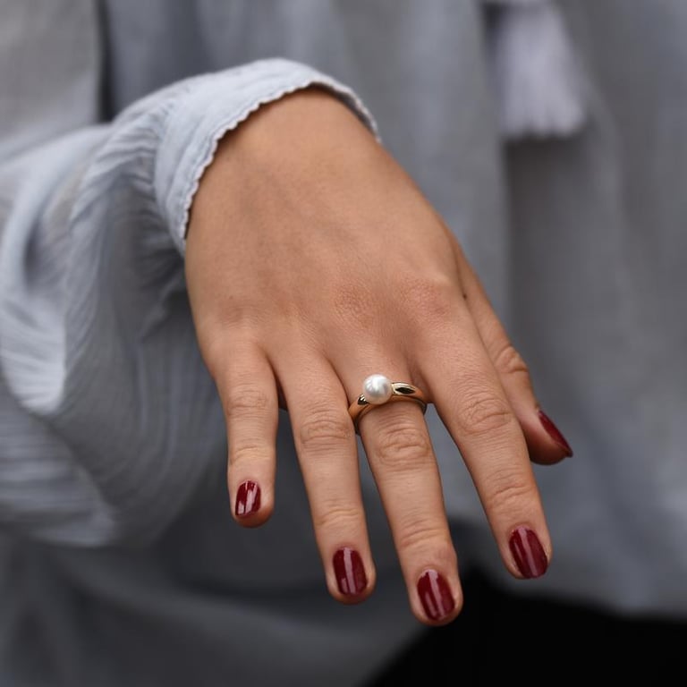 • der Ring in Weißgold fasst die Perle fast unsichtbar, aber doch sicher ein