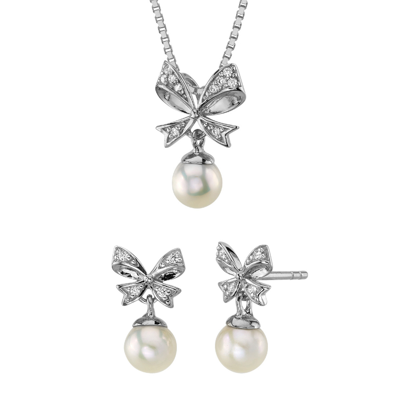 • perfektes Perlenschmuck Set mit Schleife und natürlichen Diamanten