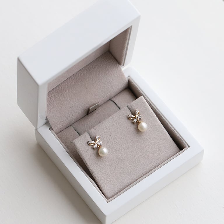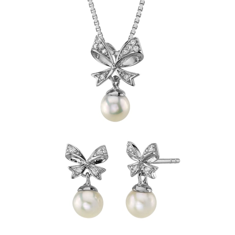 Perlenschmuck Set mit Schleife und Lab Grown Diamanten Cherlys