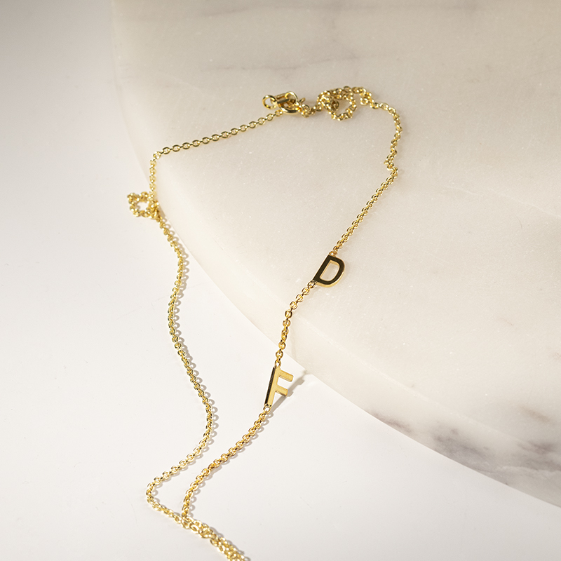Personalisierte Halskette mit 2 Buchstaben Ihrer Wahl Lupe