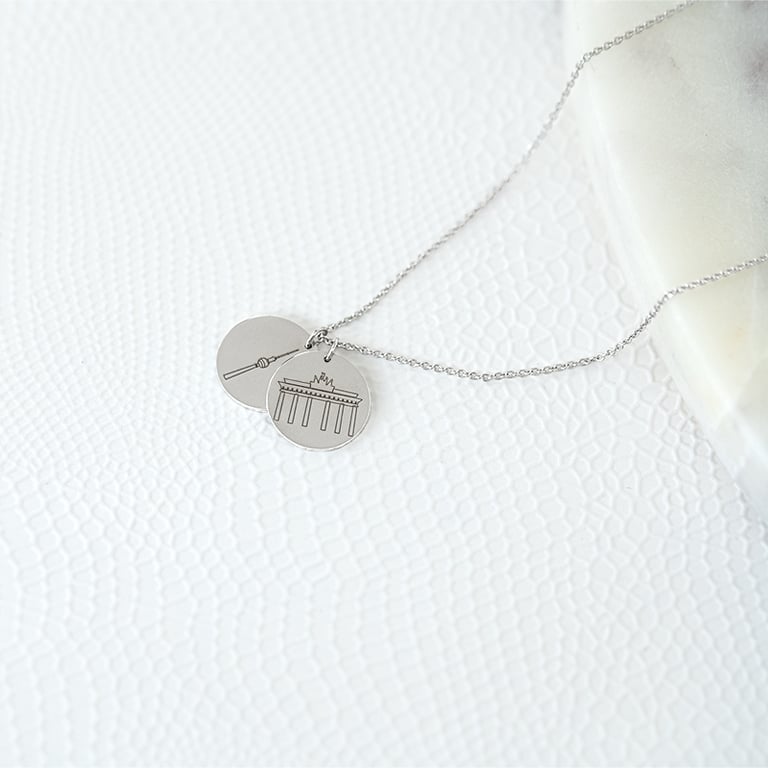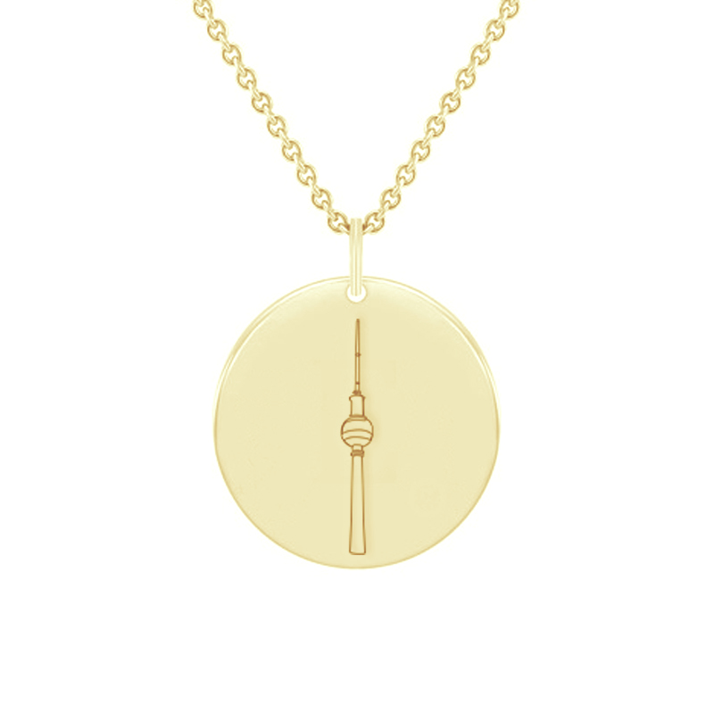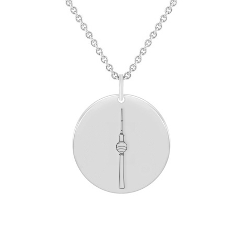 • Anhänger mit Gravur des Berliner Fernsehturms, dem berühmten Wahrzeichen der deutschen Hauptstadt