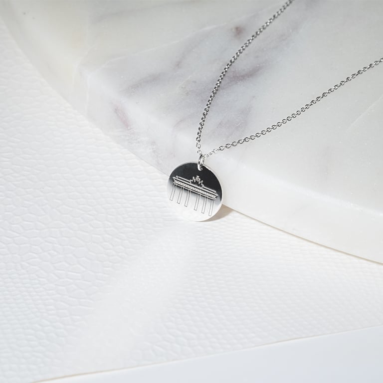 • Anhänger mit der Gravur des Brandenburger Tors, eines der berühmtesten Wahrzeichen Berlins