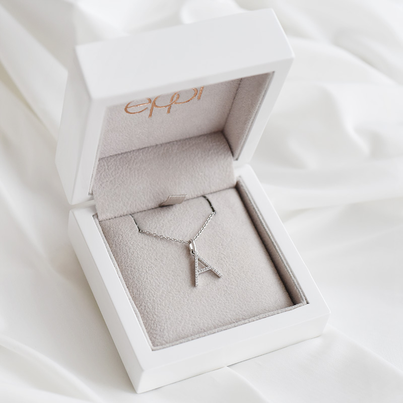 • jeder Buchstabe ist mit Lab Grown Diamanten besetzt, die ökologischer und preiswerter sind als die natürliche Variante
