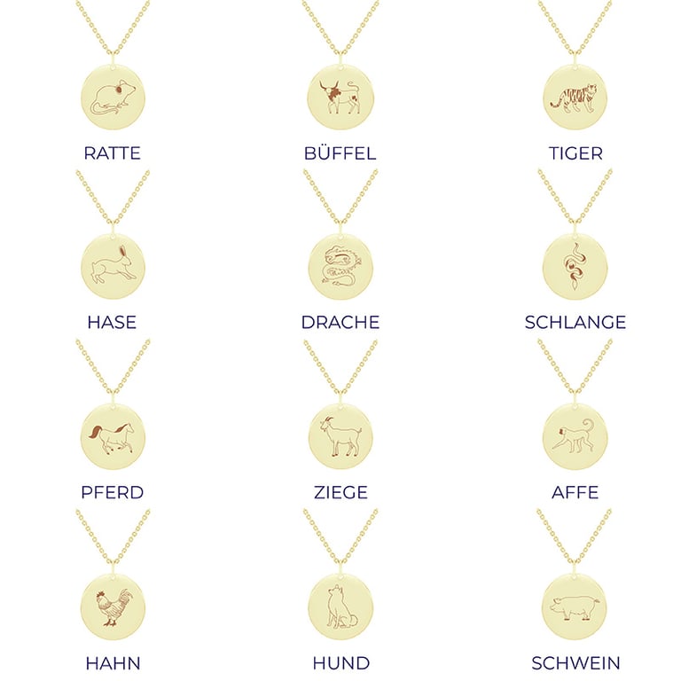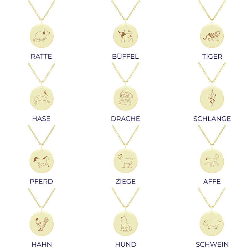 • minimalistischer Anhänger mit dem Motiv des chinesischen Tierkreises
