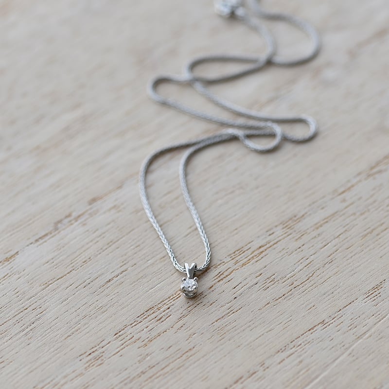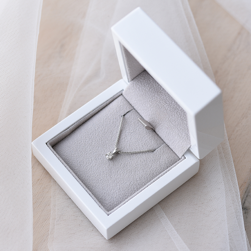 • eine minimalistische Kette mit einem IGI zertifizierten Diamanten