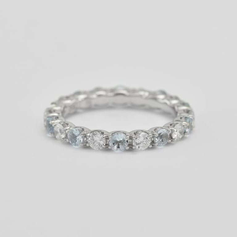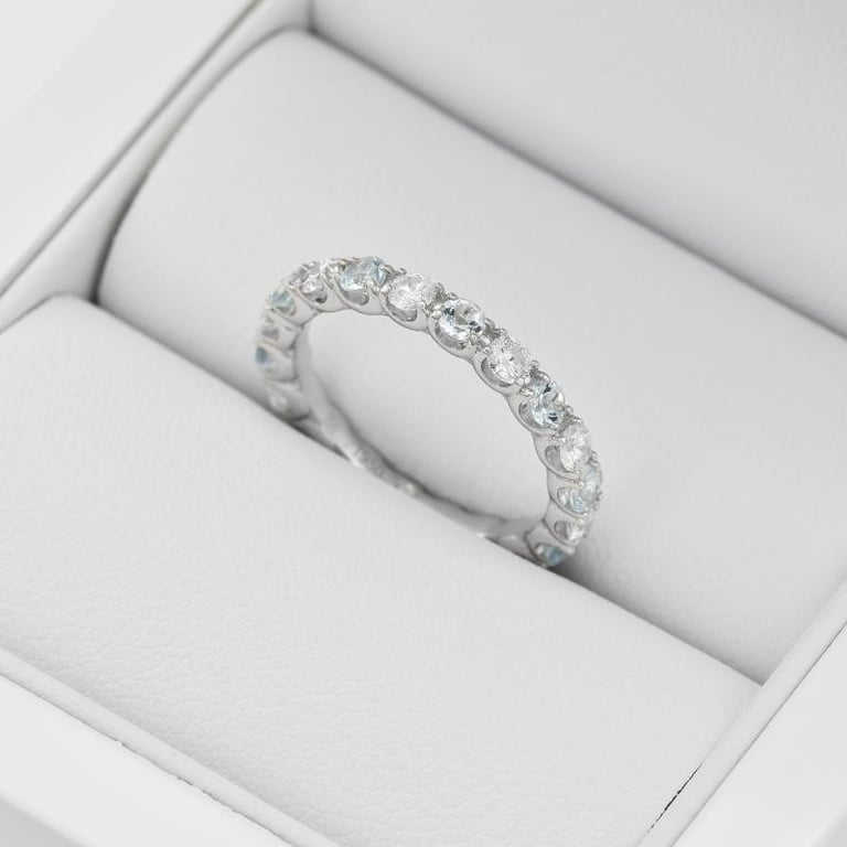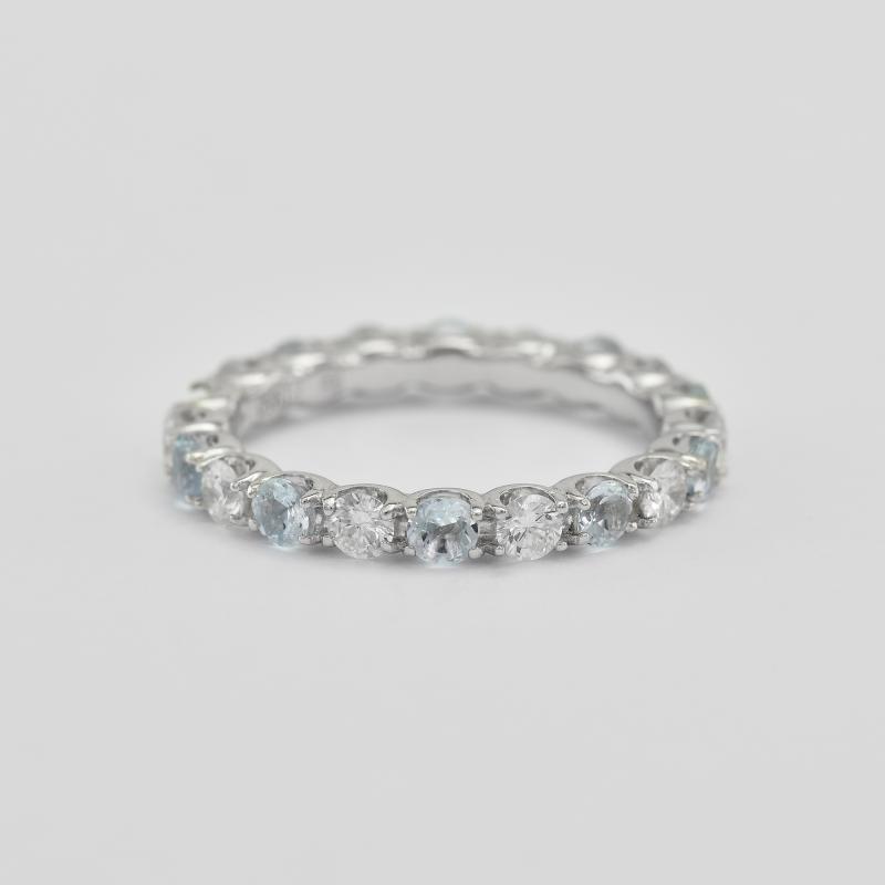 • Eternity-Platinring mit Aquamarinen und Diamanten