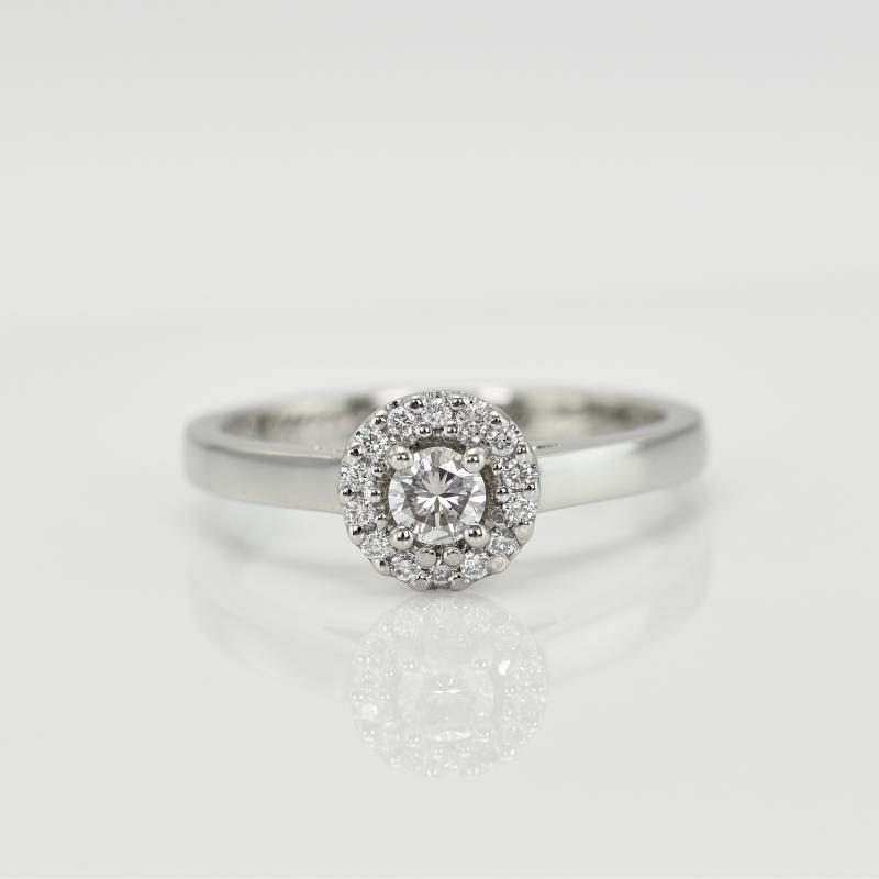 • dieser Platinring besticht mit einem wunderbaren Diamantenhalo
