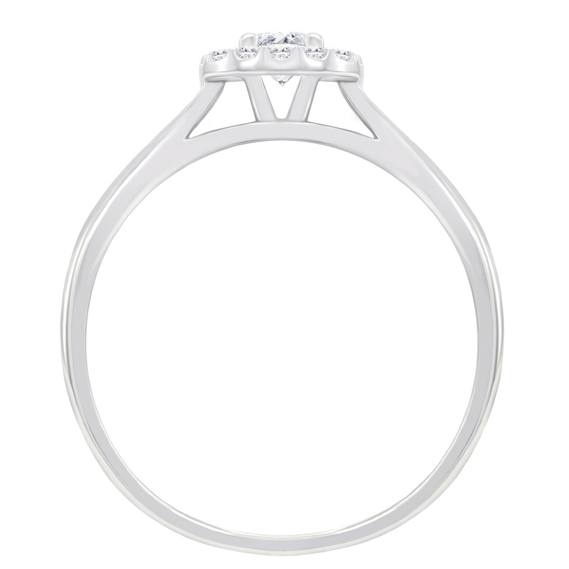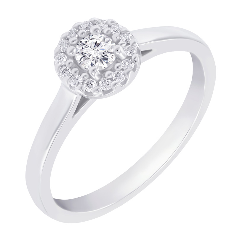 • ein großer, runder Diamant wird hier von einem Halo aus kleineren Diamanten zum Strahlen gebracht