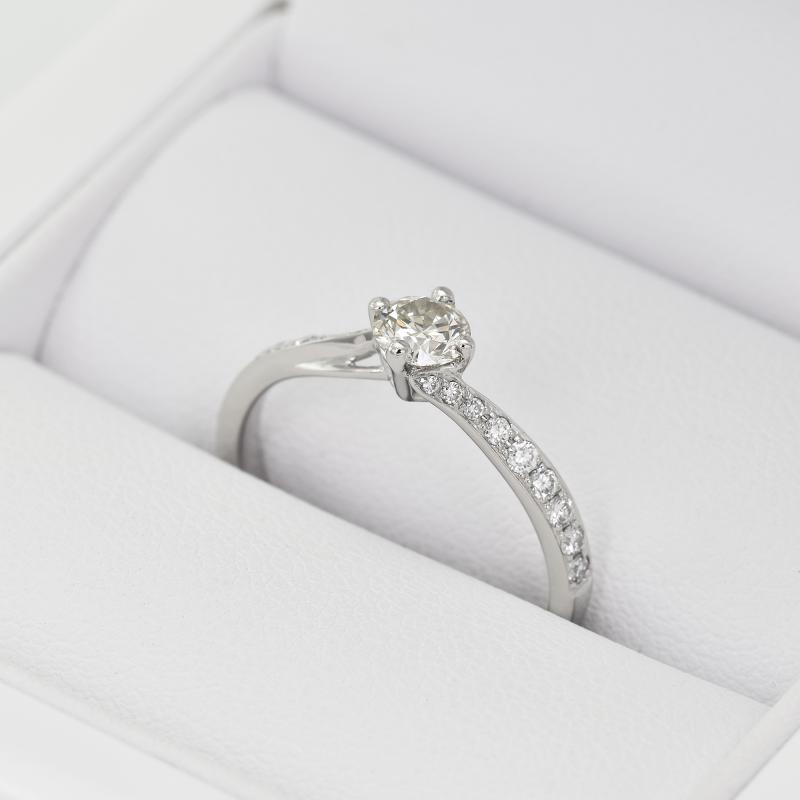 • der runde Diamant in der Mitte wird von einer diamantenbesetzten Ringschiene umflossen