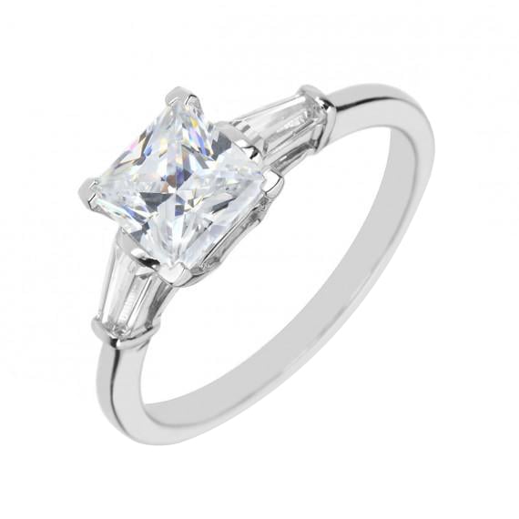 • ein Diamant im Prinzesscut wird hier mit zwei eckigen Seitendiamanten ergänzt
